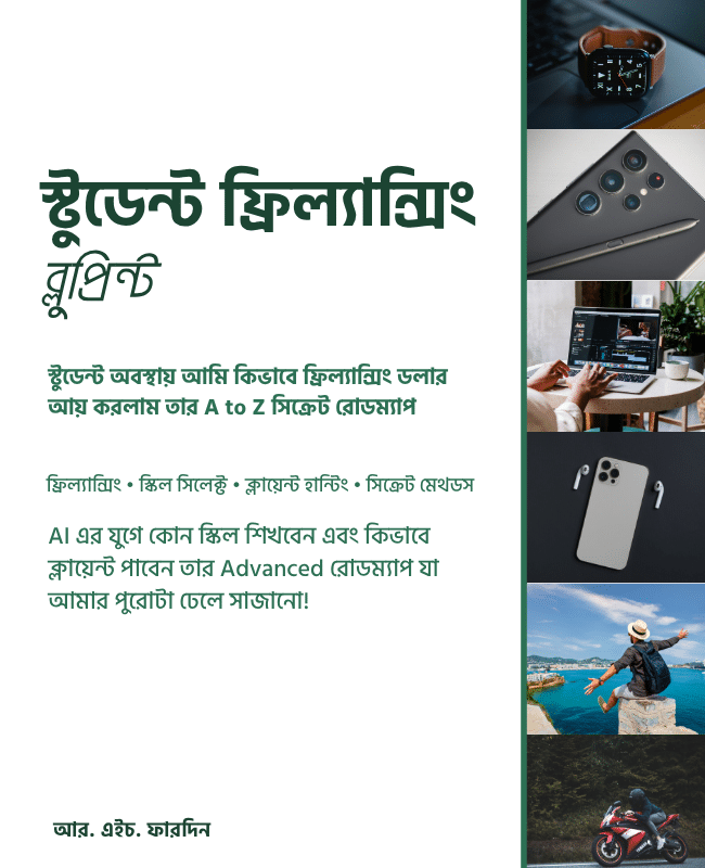 এই বইটা তোমার জন্য একটা investment। আমি এখানে আমার ৩ বছরের ফ্রিল্যান্সিং জীবনের সব ভুল থেকে শেখা lesson, ক্লায়েন্ট পাওয়ার secret strategies, আর Upwork-এ Top Rated হওয়ার পেছনের গল্প; সবকিছু উজার করে দিয়েছি। যে ভুলগুলো করে আমি আমার সময় নষ্ট করেছি, সেই ভুলগুলো এড়ানোর পথ তুমি এখানে পাবে।